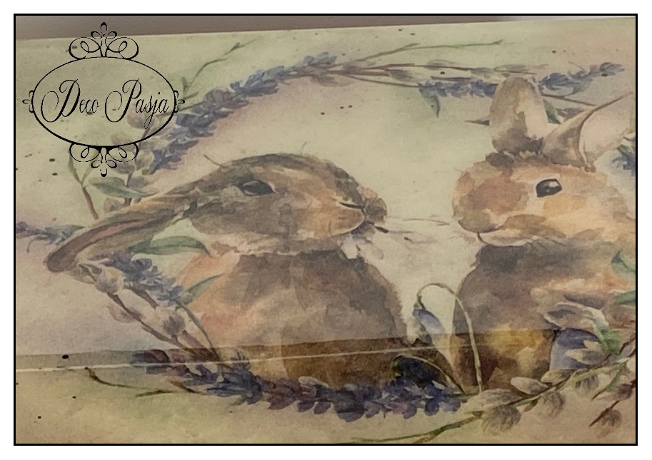 Króliki to serwetka, boczki bejca i literki 3D z szablonu lekko pozłocone. Wieczko pocieniowałam patynami Talensa-bardzo lubię te patyny.